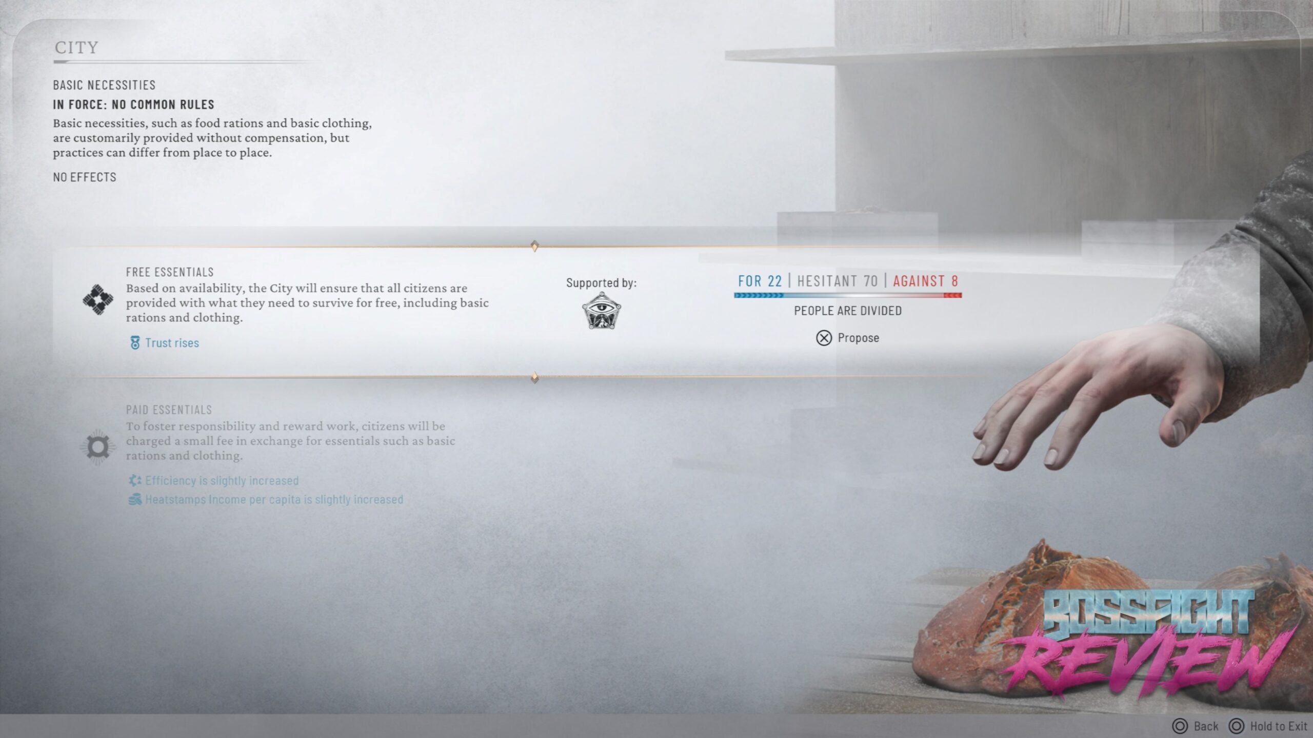 Κάτι ακόμα που εντυπωσιάζει, είναι το πως αποδίδονται οι συνέπειες των αποφάσεων. Οι φατρίες αντιδρούν, οι νόμοι αλλάζουν τον τρόπο με τον οποίο οι άνθρωποι σας αντιλαμβάνονται και ο κακός σχεδιασμός γίνεται εμφανής, μερικές φορές με οδυνηρό τρόπο. Ο ρυθμός του παιχνιδιού είναι σκόπιμος και περιστασιακά ασυγχώρητος. Για τους παίκτες που απολαμβάνουν τις προκλήσεις και τους αρέσει να σκέφτονται μπροστά, αυτό είναι πρόσφορο έδαφος. Αν είστε πιο casual παίχτης όμως, η καμπύλη μάθησης και το βάρος της μικροδιαχείρισης μπορεί να σας ξενίσει, κάτι όμως που στις κονσόλες μετριάζεται λόγο των quality of life προσθηκών.