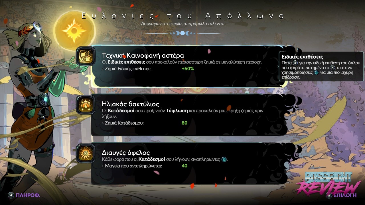 Το Bossfight.gr ευχαριστεί θερμά την Supergiant Games που μας παραχώρησε το παιχνίδι για τις ανάγκες του Review.
