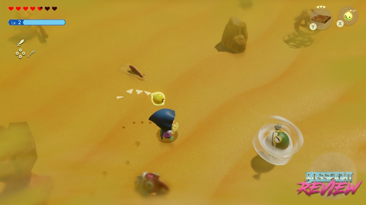 Πέρα από τα echoes, μπορούμε να δώσουμε και στην Tri μερικές εντολές όπως για παράδειγμα να προσκολλάται σε αντικείμενα ή να τα μετακινεί εάν αποτελούν εμπόδιο. Όλα έχουν την χρησιμότητα τους και εμπλουτίζουν περαιτέρω το gameplay. Ένας ακόμα μηχανισμός που προσφέρει το παιχνίδι είναι και το melee combat, με έναν τρόπο που δε θα ήθελα να τον μαρτυρήσω για να μη χαλάσω τον παράγοντα της έκπληξης. Είναι παροδικός παρόλα αυτά, κρατάει μερικά δευτερόλεπτα και προσθέτει επίσης τον τομέα της στρατηγικής. Γενικά όμως μου αρέσει αρκετά που η Nintendo δεν αφήνει την Zelda να “λερώσει” τα χέρια της. Είναι μια πριγκίπισσα και δουλεύουν οι υπόλοιποι για εκείνη, ενώ εκείνη κρατάει την απόσταση της. Εκείνη προσφέρει την σοφία της (όπως αναφέρει και ο τίτλος), δίνοντας λύση στα προβλήματα που αντιμετωπίζει το βασίλειο. Το πάει κι ένα βήμα παραπέρα, βάζοντας τους εχθρούς να παλέψουν μεταξύ τους (μέσω των echoes). Μεγαλοφυές και ταιριαστό, με κέρδισε. Τέλος, το παιχνίδι διαθέτει και fast traveling μέσω αγαλμάτων που συναντάμε τακτικά στον χάρτη και ενεργοποιώντας τα μπορούμε να τηλεμεταφερθούμε σε αυτά. Καλοδεχούμενα, γιατί κάνουν το ταξίδι μας πιο εύκολο και μας γλιτώνουν από αρκετό χρόνο και back tracking.